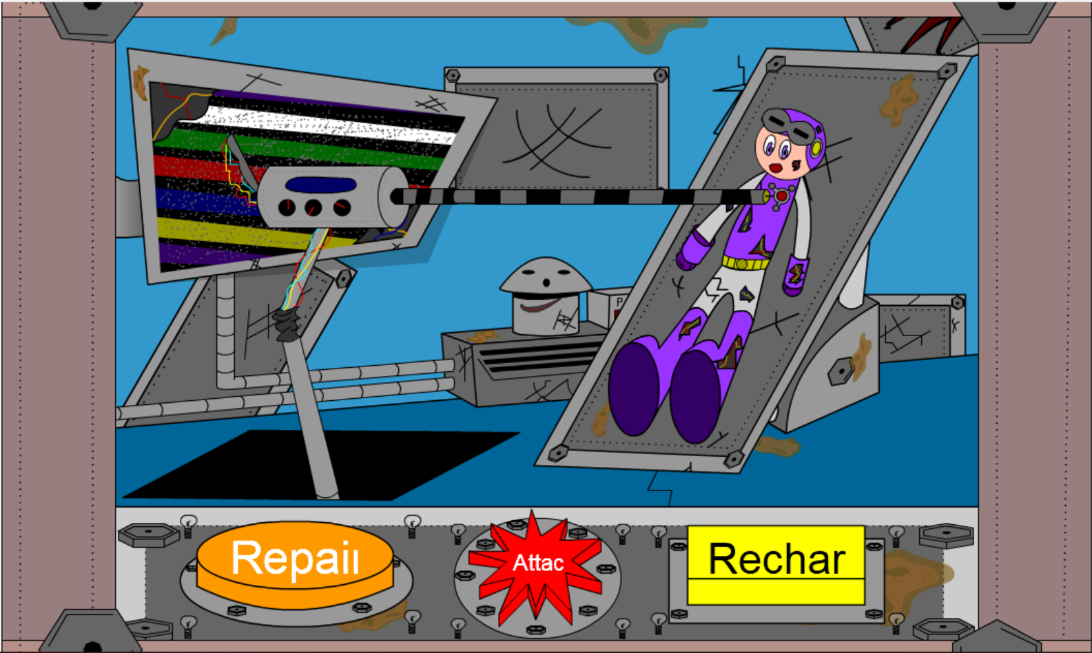 The robot animation was the final project for Interactive Design III. The animation could have been about anything, as long as it had three interactive animations that utilized a code and button clicks. My theme of the project was a robot repair area, with creating a character that was clearly inspired by Mega Man; this project also inspired my idea for the Game Design Capstone that I pitched to the class. The animation needed to have buttons for human interaction with the animation, three animated scenes after the player pressed a button, an idle animation that would loop when the user has not pressed a button, and code so the scenes would transition by button press. This was done in Adobe Animate, so the shapes and coloring look more childish and 2D, but kept great detail with several steps for the animation with each press. The user is simulated to be the person testing or repairing the robot, with each button press having a function to recharge, test arm cannon, or weld pieces back together to the robot. I had help on the coding aspect, but also used my previous animation project to help be a reference to switch from scene to scene. The main drawback of this animation is that it’s only interactive with Flash animation, which is no longer supported on browsers, limiting the availability of others to see my project.